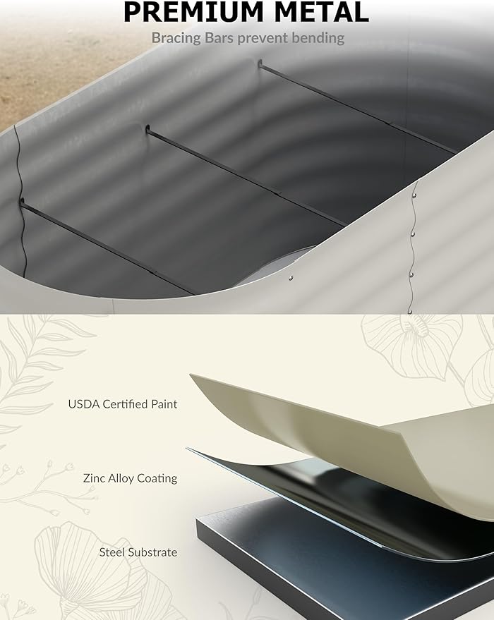 - 【2 Pack Premium Galvanized Raised Garden Bed】Our heavy-duty raised garden bed features 18/24in elevated sides - taller than standard garden boxes for better root growth. Constructed with weather-resistant galvanized steel and internal supports, this planter raised bed offers superior durability for outdoor use.