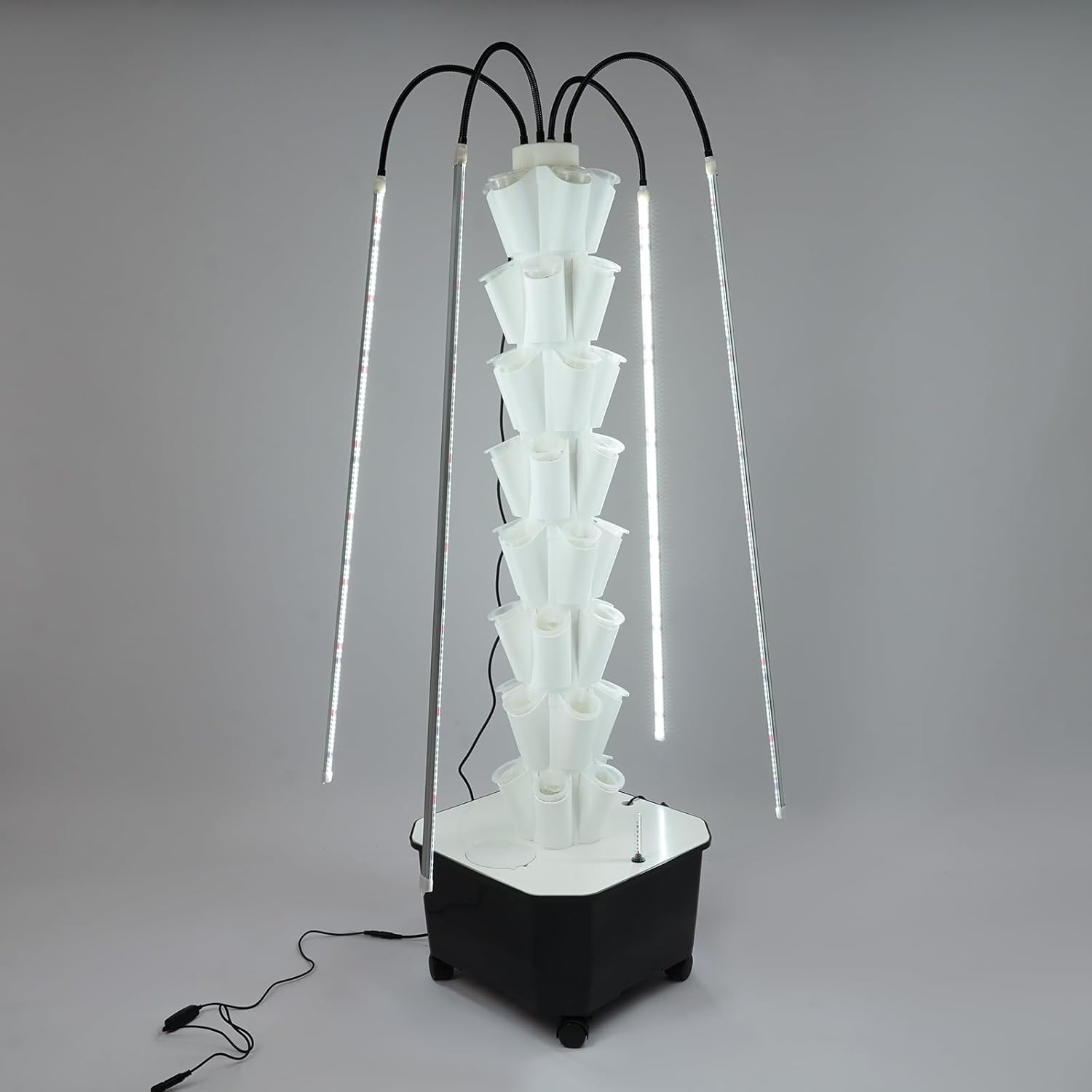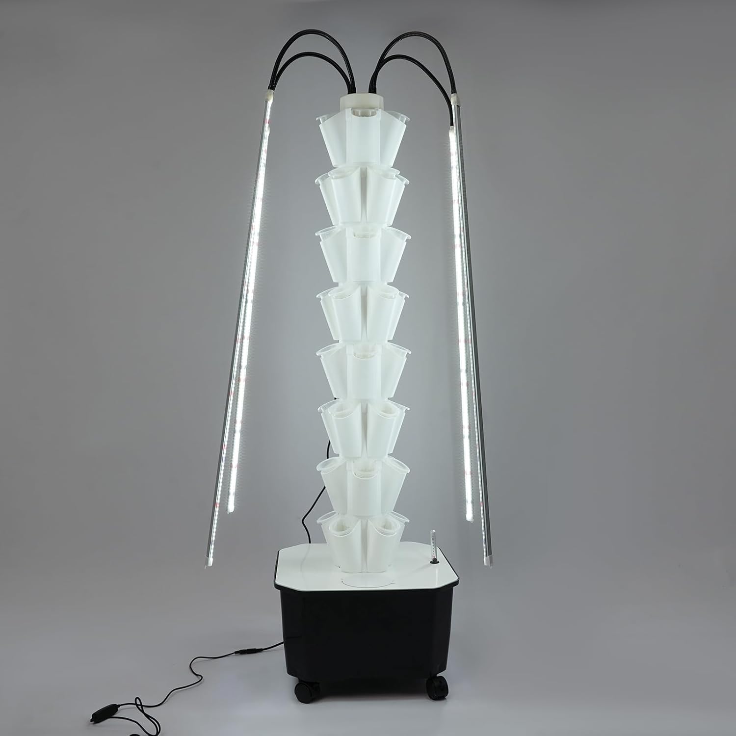 - 【DURABLE PP CONSTRUCTION & ENHANCED MOBILITY】Crafted from robust PP material, this hydroponic tower ensures exceptional durability, impact resistance, and long-term usability. Its integrated four caster wheels with individual brakes allow smooth movement and secure placement in any desired location.