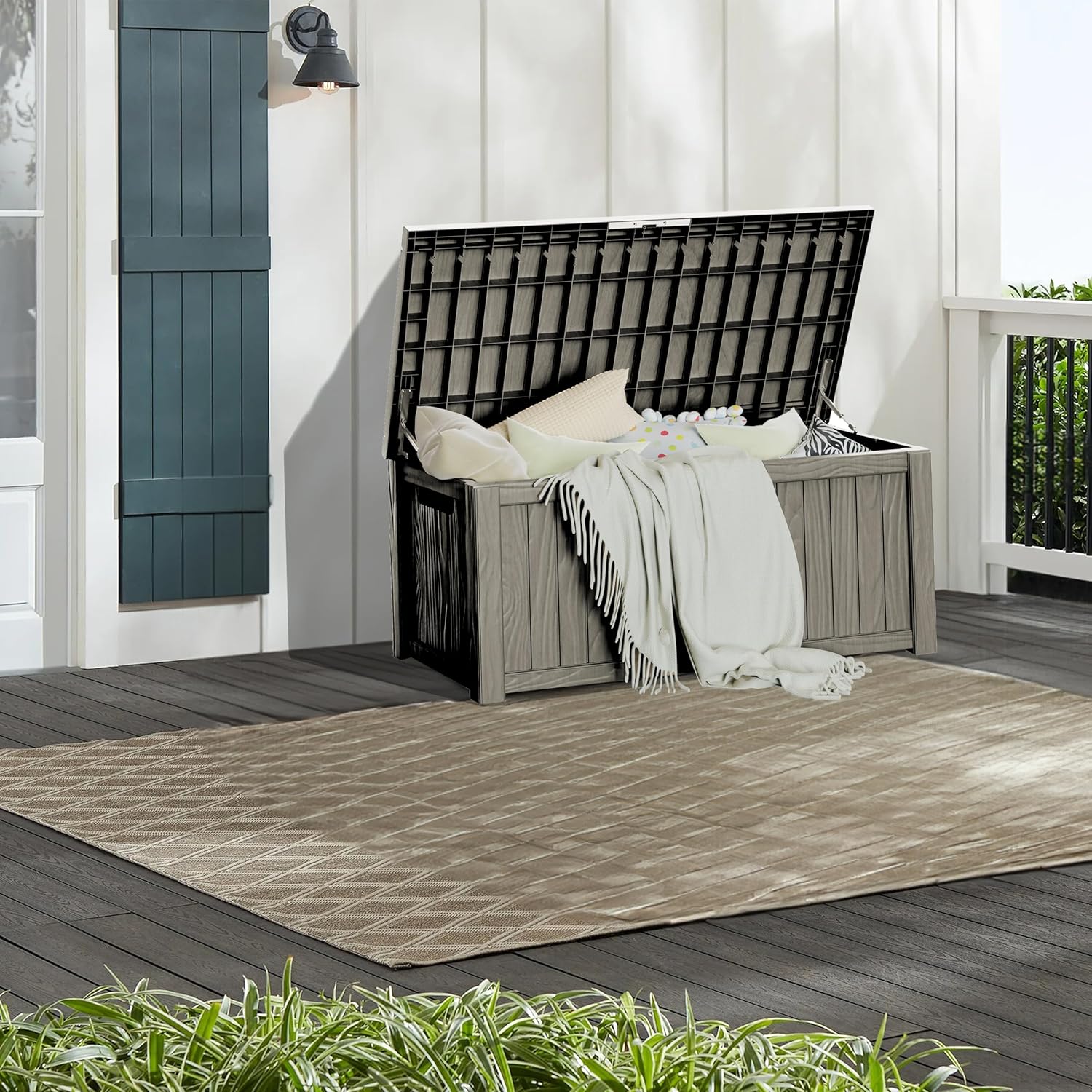 150 Gallon Waterproof Large Resin Deck Box Indoor/Outdoor Lockable Storage Container and Seating for Garden, Pool, and Patio (150 Gallon, Grey)